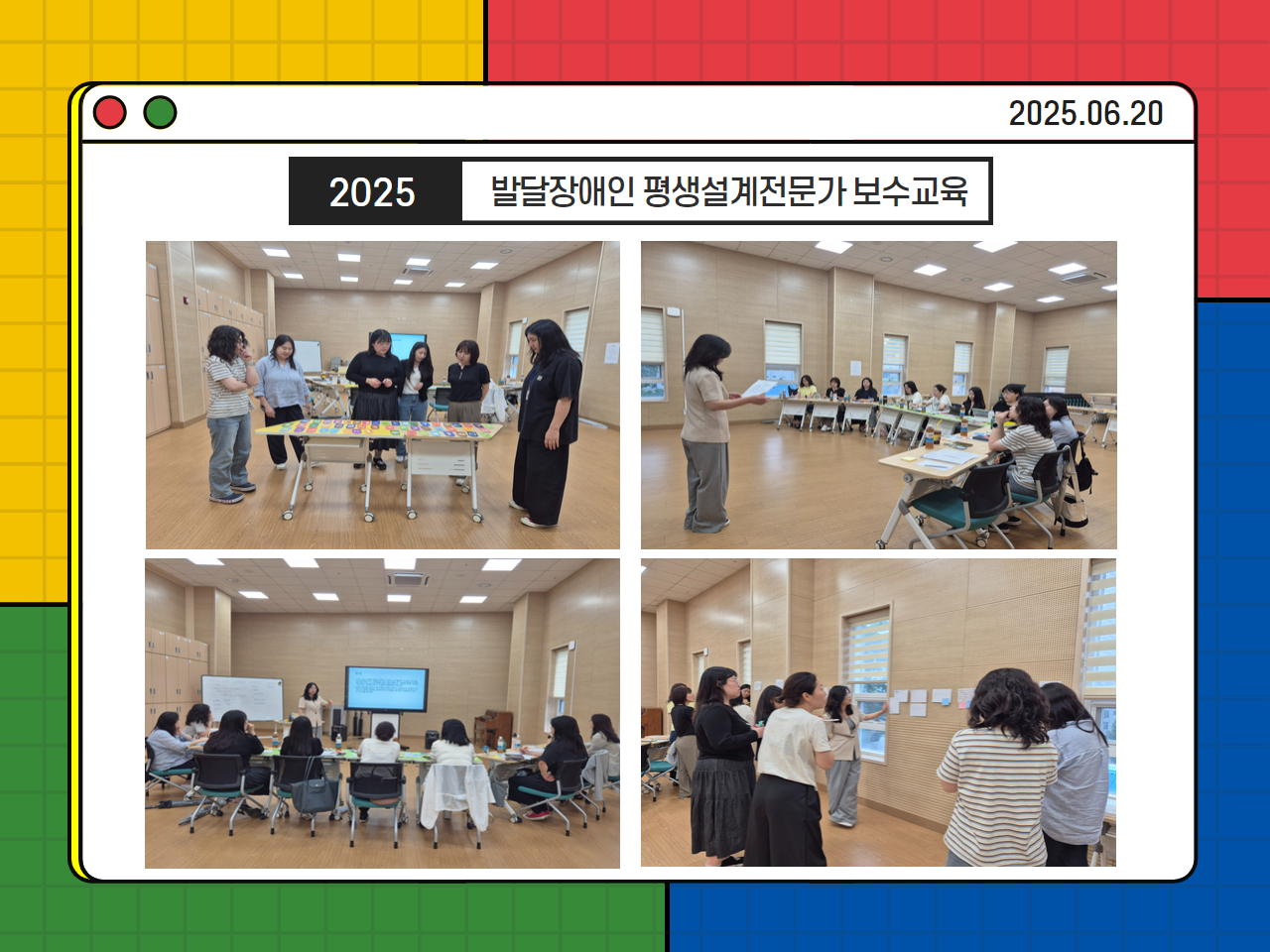 5월에 진행한 전문가양성 기본교육에 이어 평생설계를 실천 중인 장애인복지 종사자들을 대상으로 보수교육이 진행되었습니다.